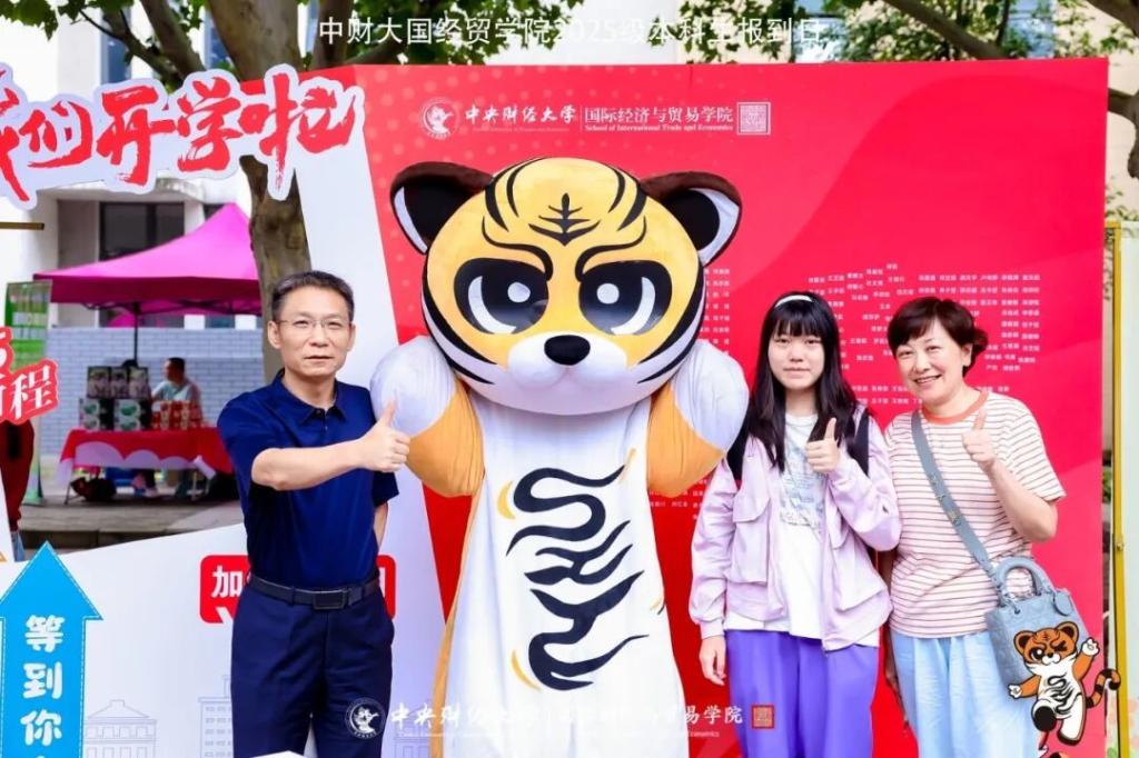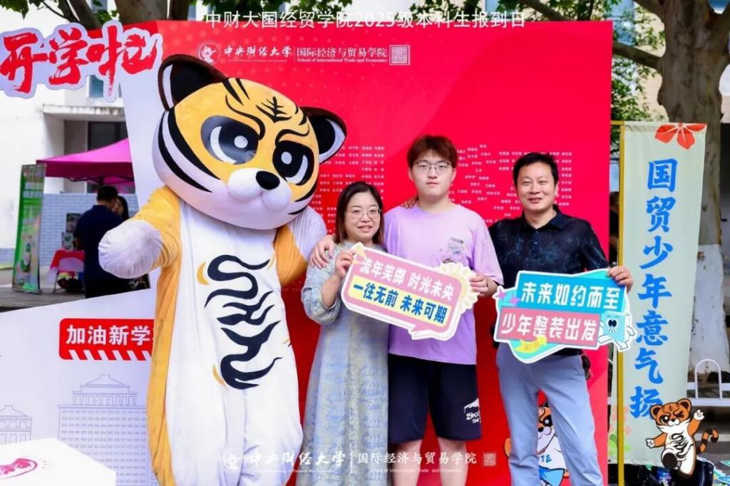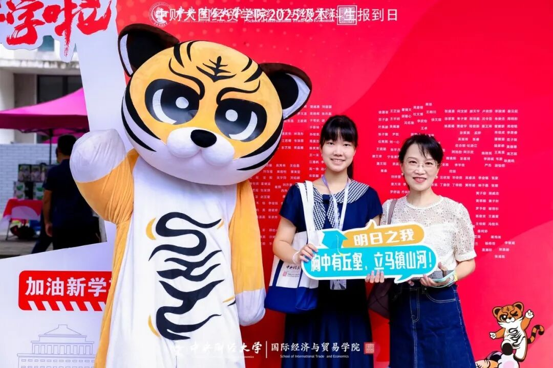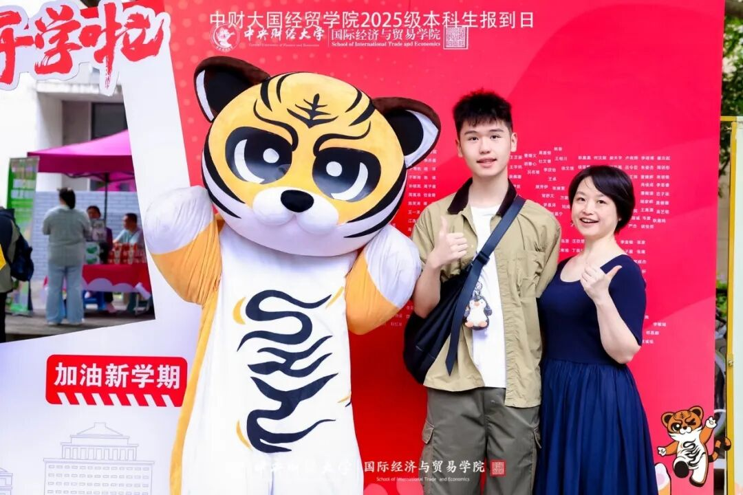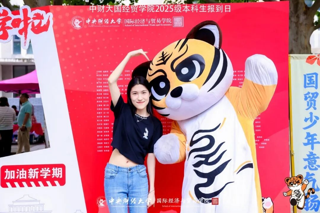 迎新现场处处洋溢着活力与暖意:活泼可爱的吉祥物“贸贸虎”蹦蹦跳跳,挥舞着爪子热情挥手,每一次转身、每一个互动都让新生脸上绽开笑容,瞬间驱散了初入校园的陌生感;学院老师与志愿者们始终坚守报到点,从证件核验到流程指引,从校园生活咨询到行李临时存放,他们耐心解答每一个疑问,细致处理每一处需求,用行动传递温暖。新生们则怀揣着对大学生活的无限憧憬,或与家人分享初入校园的见闻,或主动与志愿者交流专业学习困惑,脸上洋溢着朝气蓬勃的青春风采。