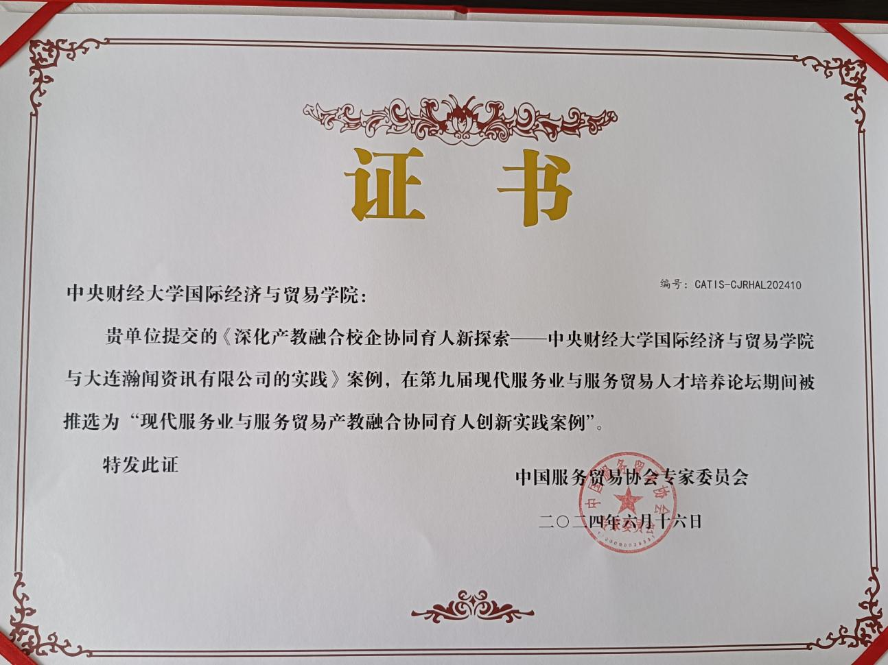 基于此,学院在产教融合校企协同育人的创新的实践形成的成果《深化产教融合校企协同育人新探索——3044am永利集团与大连瀚闻资讯有限公司的实践》案例在第九届现代服务业与服务贸易人才培养论坛推选为“现代服务业与服务贸易产教融合协同育人创新实践案例”,《推进产教深度融合,助力新质生产力人才培养》获第九届现代服务业与服务贸易人才培养论坛暨第二届现代服务业与服务贸易教育教学成果二等奖,标志着校企协同模式获行业权威认可。